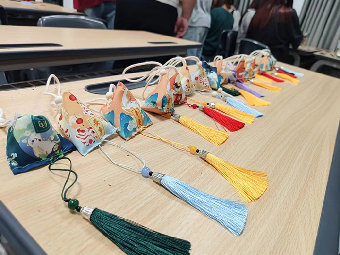 端午前夕,2023级动漫专业的同学在晚自习时,分成几个小组,围坐在一起,精心挑选香囊与药材,大家亲手缝制、装填各样香囊,体验端午文化,大家互帮互助,感念师恩,共话师生情、同学情,其乐融融。一个个精致的香囊散发着阵阵香气,洋溢着端午的喜庆,为校园增添了传统文化的底蕴氛围。