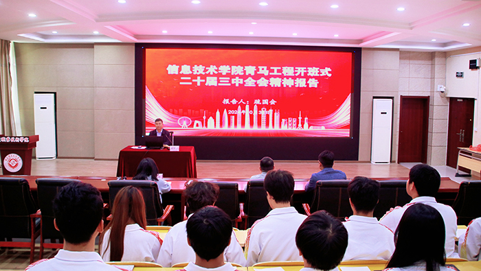 10月30日下午,信息技术学院在2号教学楼信仰报告厅举行2024年“青马工程”暨第15期学生干部培训开班式。学院党总支书记、院长疏国会,党总支副书记陈富汉、团总支书记杜青、团总支副书记江承桐以及85名学员参加开班式。