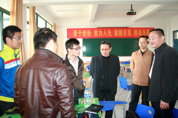 4月12日上午,江洪书记,张旺牛副书记,院长助理姚尚庆,院党委委员、办公室主任吴登明在院实验实训中心负责人的陪同下看望慰问了正在备战2011年省职业院校技能大赛的选手和指导教师。