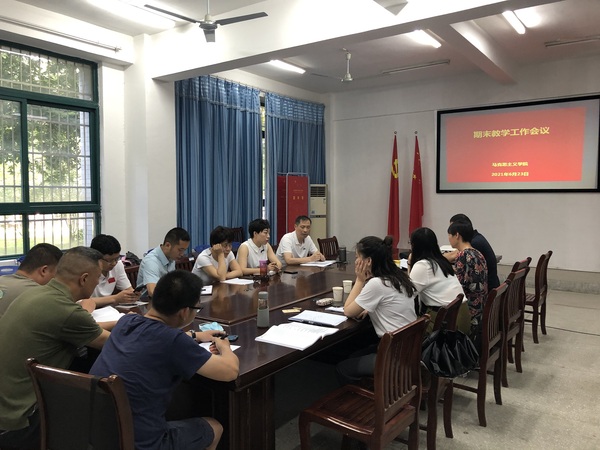 623日,马克思主义学院在3106会议室召开期末教学工作会议。院长朱松节主持会议并讲话。全体专兼职教师参加会议。