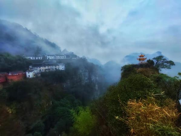 齐云山位于安徽省黄山市休宁县城内,与黄山南北相望,风景绮丽,素有黄山白岳甲江南之美誉。教师们漫步在山间崎岖的小路上,打卡了观光洞天福地、寿字岩,真仙洞府、月华街、太素宫等景点,欣赏了丹霞地貌,观看了摩崖石刻,最令人难忘的景色是登顶后,映入眼帘的是整座齐云山云海环绕,场景十分壮美,在云海中一丛丛粉墙黛瓦的徽州民居掩映其中,犹如一幅幅清新淡雅的水墨画,美不胜收。