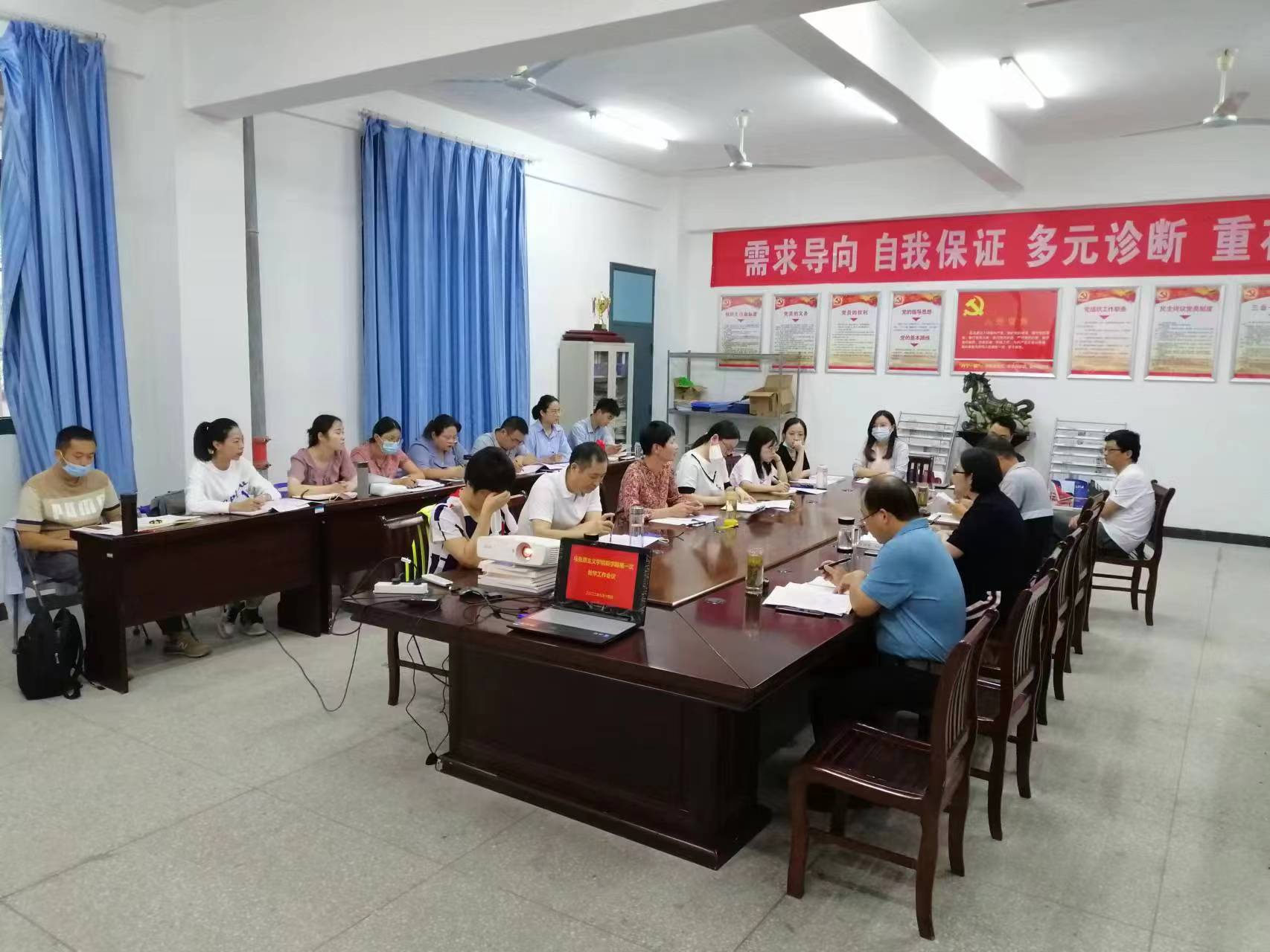 分管教学副院长就暑期我院教学情况做了通报,主要围绕暑期培训及研学情况、送教进社区活动的开展、新进教师的相应要求这几个方面。其次详细介绍了本学期重点工作:深入学习《8040威尼斯课堂教学基本规范》;认真对待思政课堂,狠抓课程教学质量;通过各种形式选拔教师参加教学技能大赛;教学审批及本科专业的培育和申报;贯彻落实本学期普通班和扩招班的相关工作。