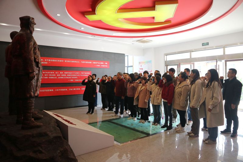 在讲解员的带领下,全体党员首先参观了木塔红军纪念馆序厅,厅内设有三尊前辈雕像,他们分别是方志敏、粟裕、寻淮洲。上世纪二三十年代,他们曾领导木塔人民开展土地革命,建设革命根据地和红色政权。馆内以沙盘的形式再现了中国工农红军北上抗日先遣部队第一阶段的征程。全体党员教师佩戴党徽、整齐列队,在马克思主义学院党总支书记余锋的带领下,面对鲜红的党旗,紧握右拳,以铿锵有力的声音,重温入党誓词,表达了忠诚于党、忠诚于人民、忠诚于马克思主义的坚定信仰,再一次受到了心灵的洗礼和党性教育。