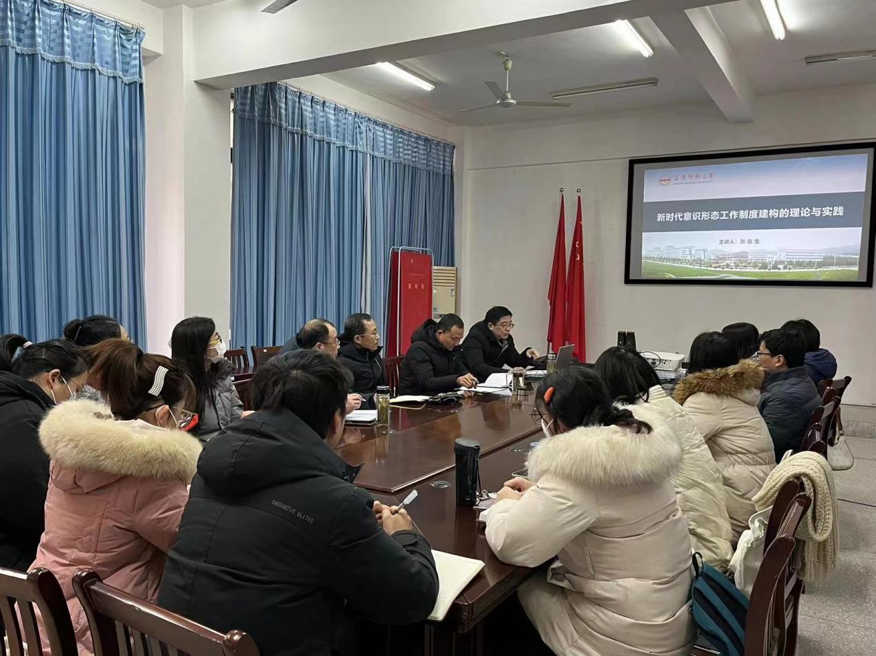 12月20日下午,安庆师范大学马克思主义学院张俊生副教授在3号楼106会议室作《新时代党的意识形态工作制度建构战略思考》专题讲座。马克思主义学院教学副院长余世建主持讲座,马克思主义学院全体教师参加讲座。