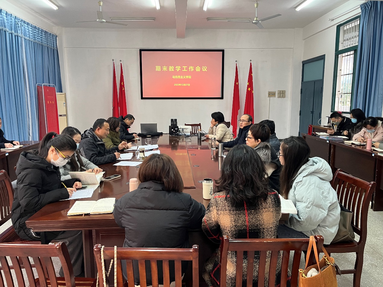 12月27日下午,马克思主义学院在3号教学楼106会议室召开了期末教学工作会议,马克思主义学院全体专兼职教师参加,会议由副院长余世建主持。