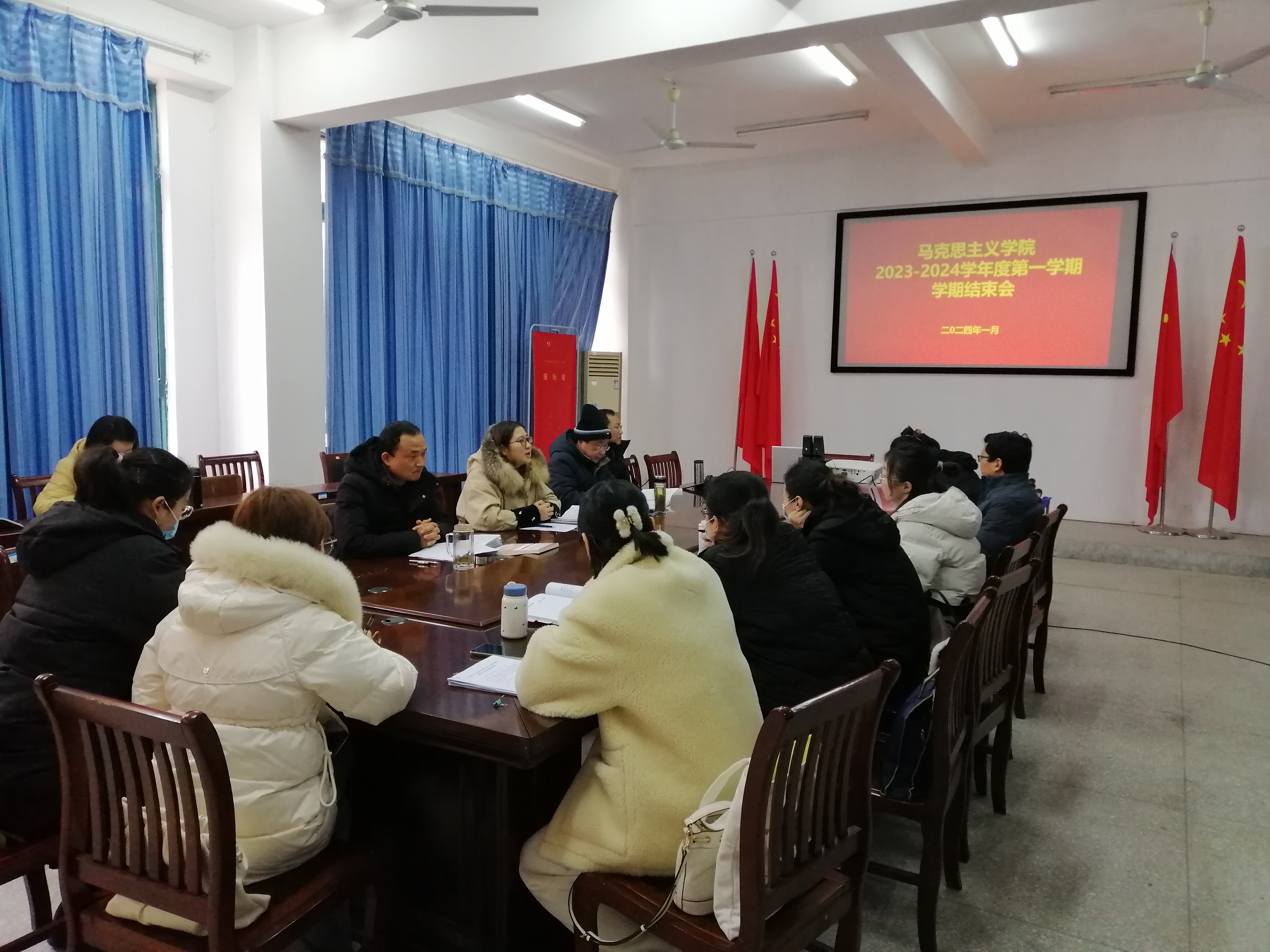1月26日下午,马克思主义学院在3-106会议室召开2023-2024学年度第一学期结束会暨寒假工作布置会,全体教师参会。