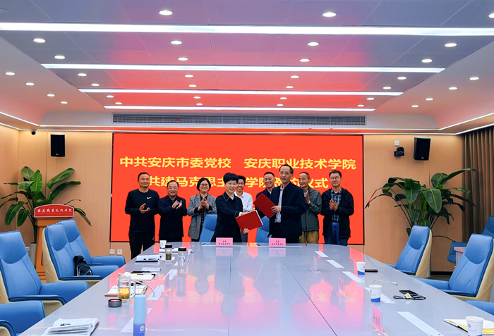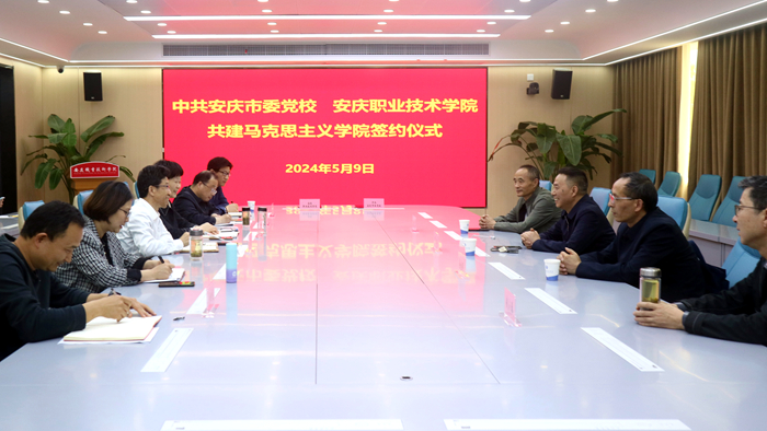 为进一步加强威尼斯官网思想政治工作,5月9日威尼斯官网与中共安庆市委党校举行“共建马克思主义学院”签约仪式。校长毕明生、安庆市委党校副校长程鹏出席签约仪式。市委党校教育长徐继明和相关部门负责人,威尼斯官网党委委员、宣传部部长吴何珍以及马克思主义学院相关同志参加签约仪式。