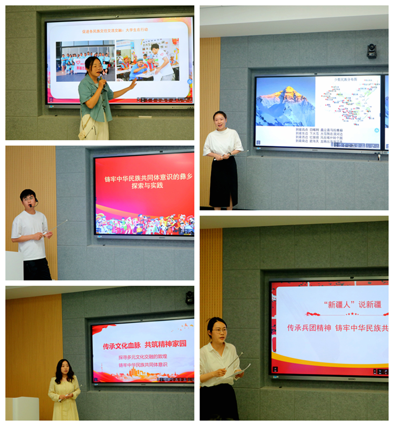 磨课活动中,参赛教师以《中华民族共同体概论》《时事报告:大学生版》(2023-2024学年度下学期)为参考,紧紧围绕“铸牢中华民族共同体意识”主题,精心选取教学内容开展教学,按照比赛要求逐一进行了无生教学现场展示。展示环节,五名参赛教师运用信息化的教学手段,精心呈现各教学环节设计,运用大量鲜活、生动的案例和丰富的视频资源,深入浅出地讲解了课程内容,现场精彩纷呈、高潮迭起,充分展示了马院思政教师的良好精神风貌与扎实专业功底。