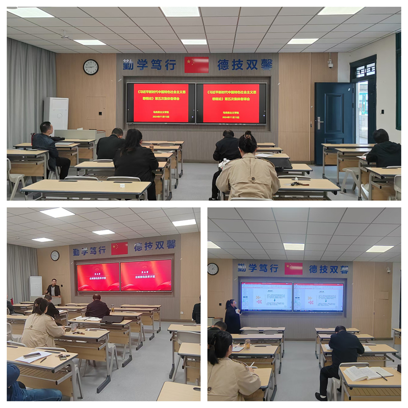 为切实推进党的二十届三中全会精神、习近平总书记考察安徽重要讲话精神等进教材、进课堂、进头脑,精准把握教学重难点,进一步提高课堂教学质量,不断提升教师教学水平,11月13日下午,《习近平新时代中国特色社会主义思想概论》教研室在3号楼105教室召开集体备课会。会议由教研室负责人陶德庆主持,教研室全体教师参加了会议。