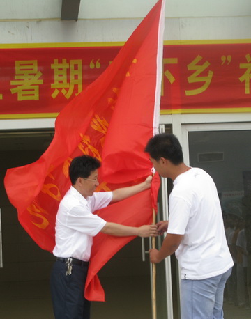 最后,毕明生副院长为参加活动学生授旗。