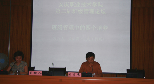 学生处负责人主持第二届班级管理论坛。卢晨怡、金启胜、何刘杰、熊祖涛、吴福贵等5位辅导员班主任先后发言。卢晨怡老师认为平等对话,用心沟通是她两年来班主任工作的法宝,金启胜老师提出良好的开端是成功的一半,爱与责任是成功的另一半,何刘杰老师“工作并快乐着”,认为辅导员班主任老师的本质就是引导与服务,辅导员班主任要增强自己的亲和力,熊祖涛老师则对与学生沟通和理解的方法上做了有益的探讨,吴福贵老师认为培养学生积极心态、良好班风、干部队伍和师生感情是辅导员班主任工作实践的关键所在。