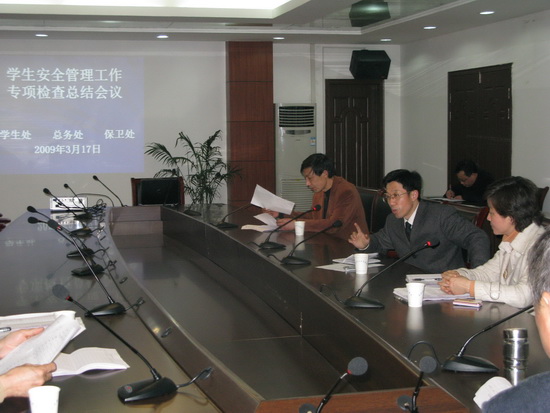 当晚,毕明生院长主持召开检查总结会议,各小组长分别汇报了检查情况。最后,毕明生副院长发表讲话。他对检查组的工作给予了肯定,要求将学生安全管理检查常规化、制度化,各部门做好跟进工作,及时发现问题、解决问题,确保学生的安全和校园的稳定。