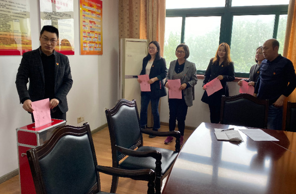 大会就换届筹备工作情况作了简要汇报,会上宣读了《党支部委员会选举办法》、宣布了下一届党支部委员会名额及委员候选人建议名单、提出监票人建议名单、指定计票人名单等。参会全体党员讨论、酝酿并审议报告、选举办法、候选人名单和监票人名单,且表决通过。会上以无记名投票、差额选举的方式选举产生新一届委员会委员;随后召开的支部委员会第一次全体会议等额选举产生支部委员会书记,并进行了其他委员的分工。党员大会复会,宣布了党支部委员会第一次全体会议选举结果及委员分工情况,新当选支部书记代表班子进行表态发言。