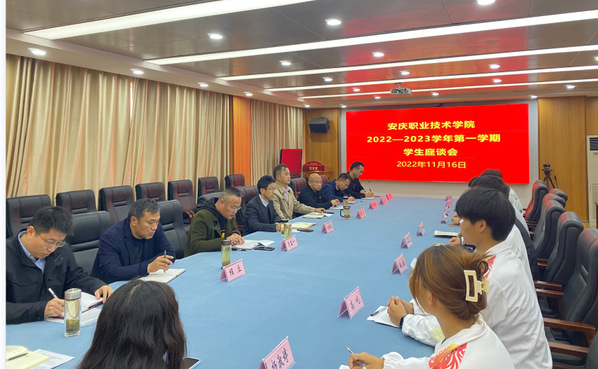 为全面深入了解学生思想动态和学习生活状况,收集学生对学校各项工作的意见和建议。威尼斯官网于11月16日下午在行政楼四楼第二会议室召开学生座谈会。校党委副书记、校长毕明生,校党委委员、副校长程飞出席会议并讲话。校党委委员、统战部部长李五一主持会议。教务处、学生处、后勤保障处、保卫处、图文信息中心等部门负责人和18名学生代表参加座谈。