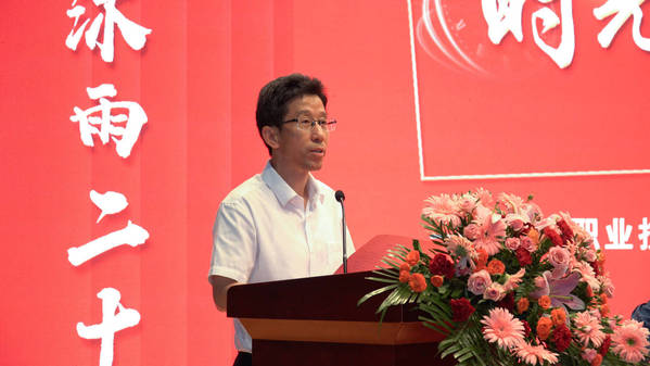 教师代表许邦云老师见证了毕业生通过不断努力在追寻着自己的理想,一步一步累积着成长的足迹。回顾了与他们三年的师生情谊,也希望他们在社会这所大学里能始终保持一颗平常心,心胸豁达,活得快乐,相信和期待他们事业有成,生活幸福!