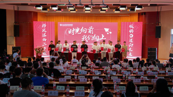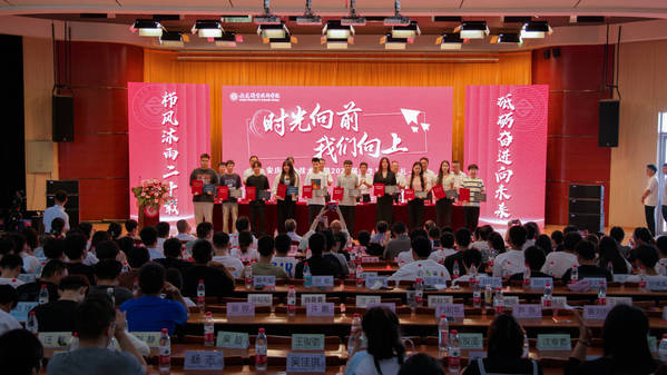李五一代表校党委宣读关于表彰2023届优秀毕业生的决定。校领导为受表彰学生代表颁发荣誉证书和毕业证书,并合影留念。