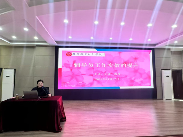 培训会邀请王瑛教授授课。王瑛以《辅导员工作实效的提升》为主题,从辅导员工作现状、高职学生的现状、辅导员工作具体内容、辅导员工作方法以及个人工作实际和感想等方面,以丰富翔实的案例,深入剖析了辅导员工作的基本特点和存在的问题,分享了自己从教数十年来如何与学生相处,对如何提升辅导员工作实效提出了应对思路。