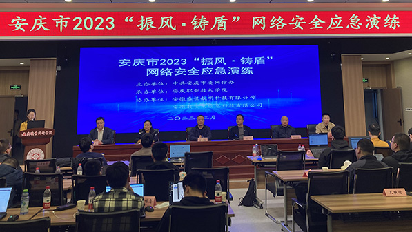 3月10日,由安庆市委网信办主办、8040威尼斯承办的2023“振风·铸盾”网络安全应急演练在8040威尼斯图文信息中心学术报告厅举行,网络安全企业、运营商以及部分高校共15支代表队参加演练。安庆市委网信办副主任唐张喜、8040威尼斯副校长程飞亲临现场指导,并为获奖团队颁奖。