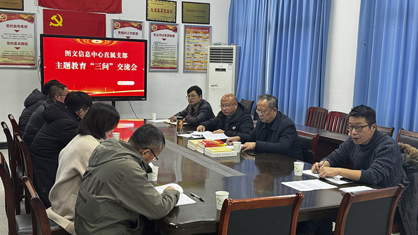 为深入开展学习贯彻习近平新时代中国特色社会主义思想主题教育,12月13日下午,图文信息中心直属党支部召开了主题教育“三问”交流会,支部全体党员参会,党委委员、副校长谭维奇出席会议并讲话,会议由党支部书记许迪楼主持。