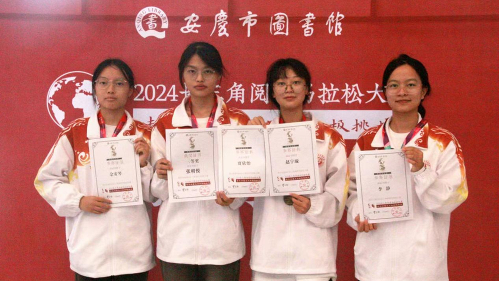 2024年9月21日,图文信息中心组织书友俱乐部的张明悦、佘安琴、赵宇璇、李静、贾欣怡 5 位同学参加比赛。他们在 6 小时的紧张赛程中,全身心地投入到对指定书籍的阅读中,并出色地完成了测试。他们的表现,是对个人专注与意志力的终极挑战,更是对阅读热爱的生动诠释。