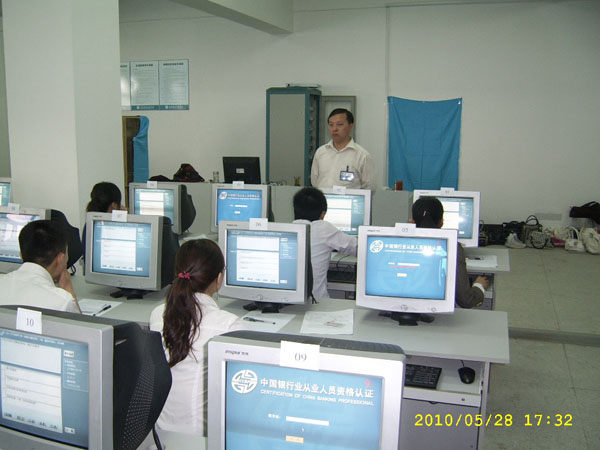 我院考点此次考试由院图文信息中心承办,电子信息系等相关部门共同参与。考试期间学院领导孙晓峰、余祖文以及省、市银行协会,ATA公司领导参加了巡考或督考。