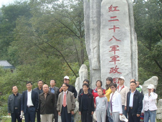 10月1日,图文信息中心直属党支部和学生处党支部联合开展了“‘迎国庆’党员红色之旅”活动,以此喜迎新中国六十一岁华诞,缅怀革命先烈丰功伟绩,增强党员的党性修养。院党委委员、副院长余祖文、毕明生与图文信息中心、学生处两个党支部的全体党员参加此次活动。 当天上午,党员们来到了位于岳西县包家乡鹞落坪自然保护区内的红二十八军军政旧址,1935年至1937年间,这里是红二十八军坚持鄂豫皖三年游击战争的大本营,高敬亭将军在此率领近3000红军战士克服重重困难,粉碎了国民党反动军队数十万人的“清剿”,使革命的红旗始终在大别山区高高飘扬。同志们参观了红二十八军展陈馆,凭吊了高敬亭将军的住所――聂家老屋,瞻仰了红二十八军纪念碑。一件件革命历史文物,一张张红色历史图片,让党员们再次感受革命先烈的英勇和顽强,感受到人民群众与党的血肉联系,感受到今天和平美好生活的来之不易。