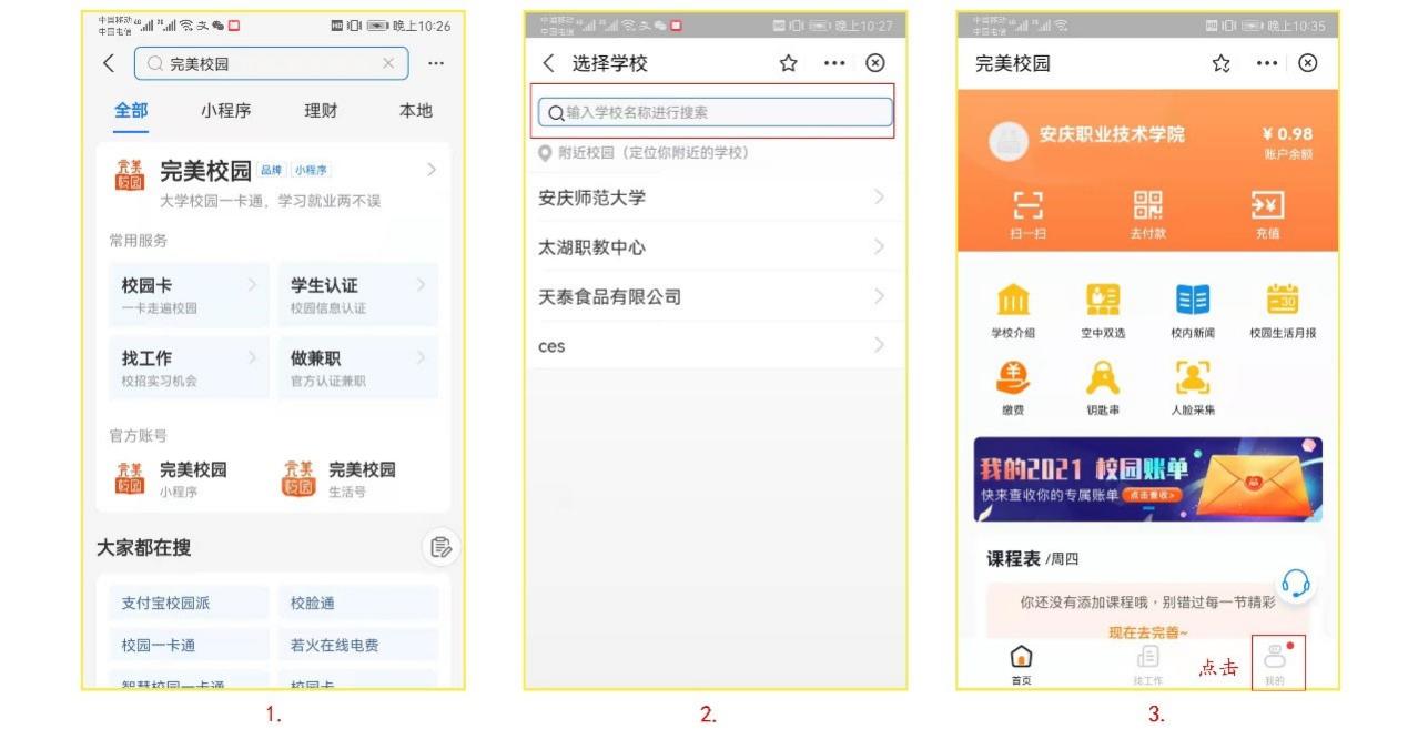 ①小程序中消费:支付宝绑定“完美校园”后,可直接从你的支付宝中进行校园支付,无需充值。