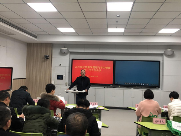 会上,教务处负责同志就扩招生教学工作安排进行布置,学生处负责同志部署了扩招生学生管理工作。(文:刘辉 审核:吴何珍)