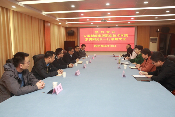 4月13日上午,安徽新闻出版职业技术学院教务处处长罗资刚一行到威尼斯官网,就教学诊断与改进工作、智慧教务管理系统使用情况、教材管理、人才培养方案相关制度与执行措施、考试考务组织与实施等问题进行考察交流。威尼斯官网教务处、质量办负责人在综合楼第二会议室接待了罗资刚一行。