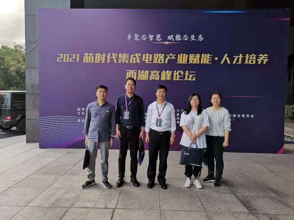 为进一步优化专业结构,探索应用电子技术专业转型思路, 5月6日至8日,在信息技术学院院长疏国会带领下应用电子技术专业相关同志一行五人前往杭州,参加由中国半导体行业协会集成电路分会、全国集成电路专业群职业教育标准建设委员会、中国职业教育微电子产教联盟、杭州国家“芯火”双创基地(平台)联合主办,杭州朗迅科技集团有限公司、杭州集成电路测试公共服务中心承办的“2021芯时代集成电路产业赋能人才培养西湖高峰论坛”。