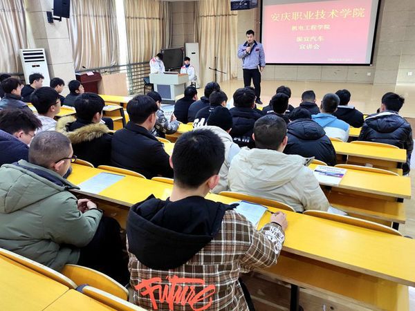 2月24日,安庆振宜汽车有限公司在1号教学楼216教室,为在场同学放映企业宣讲片,展示公司发展战略及各车间相关概况,随后就企业的一些规章制度、福利待遇、企业文化、现有产业结构、组织构架、人力资源政策等几个方面向同学们做了详细介绍,现场解答了同学们关于岗位实习的一些疑问。我院优秀毕业生也是企业员工代表叶鸣,以亲身感受向同学们讲述他在振宜汽车的工作成长经历,真诚邀请每位同学加入振宜汽车有限公司大家庭。