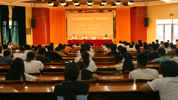 树木郁郁葱葱,喜鹊叽叽喳喳,盛夏的校园洒满阳光,生机盎然。6月29日下午,校党委书记童宏葵在图文信息中心主持召开一场与往常不同招聘对接会——“区长接你来上岗”。迎江区区长汪世平求贤若渴地带领政府办、发改委、经信局、人社局、农村农业局、商务局、区委宣传部、经开区主要负责人和7家重点企业代表,走进校园,为企业招聘所需的技能型人才。