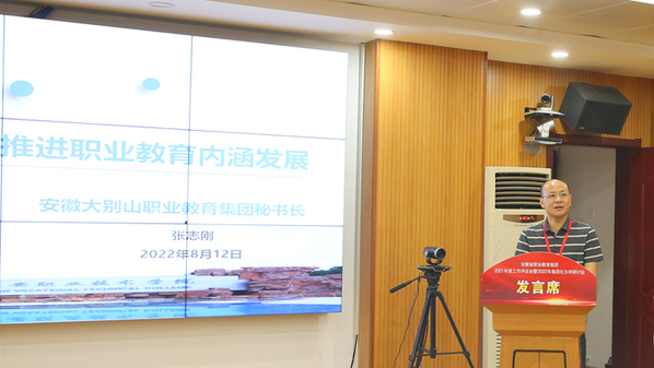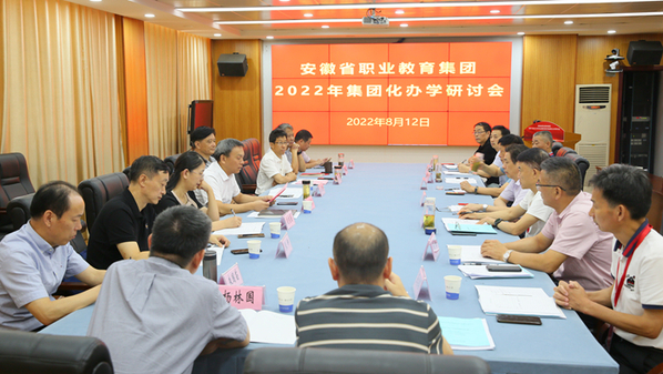 8月12日, 2022年安徽省集团化办学研讨会,在安庆职院行政楼第二会议室举行。校党委书记童宏葵致辞,安庆职教集团理事长、校长毕明生主持。