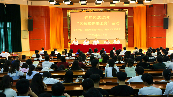 就本次活动,童宏葵用了“五个够”进行了概括。一是活动品牌“够响的”。这个活动的主题原本是“区长喊你来上岗”,区长把“喊”改为“接”,一字之改,体现了“四高”:政治站位高,是尊重技能型人才、重视职业教育的诚意体现;文字水平高,“接你”二字把区长内心对人才的渴望、尊重和诚意表达的淋漓尽致;人才地位高,目前威尼斯官网2023届毕业生就业率已达到70%,超过全省高职院校平均水平;办学质量高,说明威尼斯官网毕业生素质高,干得好,企业抢着要,区长很满意。去年的此项活动还受到《中国日报》等主流媒体的报道。二是学校工作“够拼的”。威尼斯官网始终秉持市属高校这一基本属性,最大限度地为本地企业输送高质量的技术技能人才,工作中我们做到了“专业跟着产业走、教学追着企业跑、教师围着学生转、工作对着指标干、服务随着政策调”,本地就业率实现了逐年提高。三是学校实力“够强的”。今年以来,学校又取得一系列标志性成果,首批国家级职业教育教师教学创新团队通过验收;斩获金砖国家技能发展与技术创新大赛全国一等奖;“定向人才培养培训项目”和“就业实习基地项目”就业育人项目获得教育部立项;获批安徽省“三教”改革示范校等等。四是安庆市“够美的”。安庆又名宜城,宜城就是宜居、宜业、宜家的寓意。所谓宜居,就是安庆位于长江之滨,气候宜人,风景秀美,交通便利;所谓宜业,就是指安庆作为安徽省重要的石油化工、汽车零部件制造和纺织加工业基地,被省列为皖江开发的重点开放城市之一,2016年5月又被列入长三角城市群,社会经济事业有了突飞猛进的发展,潜力巨大,商机无限;所谓宜家,就是这里人文荟萃,底蕴深厚,房价不高,工资不低。正所谓才到安庆更有戏!五是迎江区“够棒的”。迎江区是安庆市城市建设“东进”主战场,也是安庆市跨江联动战略的承接地,是安庆未来发展的着力点、新增点、闪光点和兴奋点。上个月在市双招双引“三看三比”第一季度巡回检查总结点评会上,迎江区顺利实现“开门红”。不仅“红榜有名”,而且“榜榜有名”。迎江区的秦潭湖装备制造园、新能源配套产业园等园区,展现了迎江雄厚的企业风采,打造了“迎江品牌”;衡川公司锂离子电池隔膜生产项目3月份在迎江开工,总投资110亿元,实现了迎江区百亿级工业项目“零”的突破,为安庆市新能源汽车千亿产业,贡献了“迎江力量”;这个项目推进速度快,从签约到开工仅用时89天,彰显了“迎江速度”。我们和迎江区是连环体,迎江的快速发展,将对技能型人才的需求与日俱增,也为同学们提供了优质多多的就业岗位。