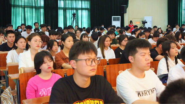 在同学们热烈的掌声中,汪世平作了热情洋溢的讲话,他真诚期待安庆职院学子手执“青春之笔”,书写“人生答卷”,共绘“迎江画卷”。他介绍了迎江区近年来的经济社会发展情况,迎江区GDP连续两年全市第一,世界500强的中化、中国500强的超威、投资超百亿的衡川、全省民营企业100强的运通达都深耕在迎江。数千名大学毕业生已成为新迎江人,他们用挥洒汗水的青春,让迎江焕发时代的张力。他说,安庆职院与迎江有着不解之缘,他详细介绍了安庆职院毕业生在迎江发展的故事,如2011届校友郭志强“创业迎江”、2022届校友李欣“成长迎江”、43名历届毕业生“还巢迎江”,他们身上散发出的务实的作风、精湛的技能、敬业的精神,给迎江留下深刻的印象,安庆职院的同学们是我们迎江最渴望的人才,希望大家做迎江发展的最铁合伙人,欢迎同学们落户迎江、服务迎江、扎根迎江。