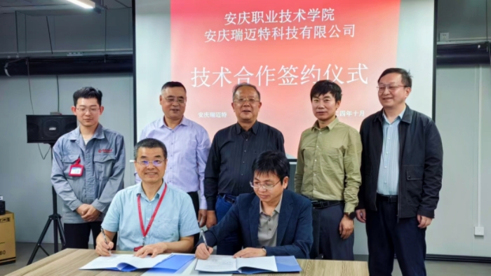 10月15日下午,校党委委员、副校长谭维奇带队赴安庆瑞迈特科技有限公司与公司共同签署《靶盘制造工艺相关装备的优化应用》项目协议,并参观考察。