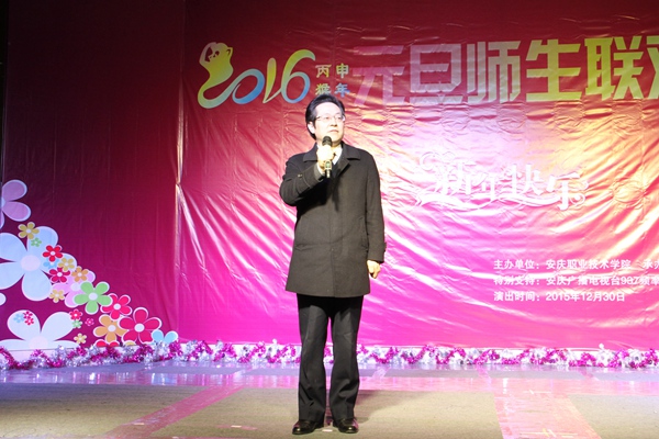 孙晓峰院长代表党政领导班子,向一年来在教学、管理和服务等各个岗位上辛勤耕耘、无私奉献的广大教职员工致以崇高的敬意和新年的祝福;向勤奋学习、朝气蓬勃的广大学生致以亲切的问候和良好的祝愿。他指出,2015年是收获的一年,学院各方面发展都获得了骄人的成绩,它离不开全体老师同学们的共同努力。2016年是十三五规划开局之年,也是学院建设地方技能型高水平大学起始之年,坚信在院党委的正确领导下,全体师生的共同努力下携手并肩、团结一心,面对困难不退缩、面对机遇不错过、面对发展不松懈,学院的未来一定更加辉煌灿烂。