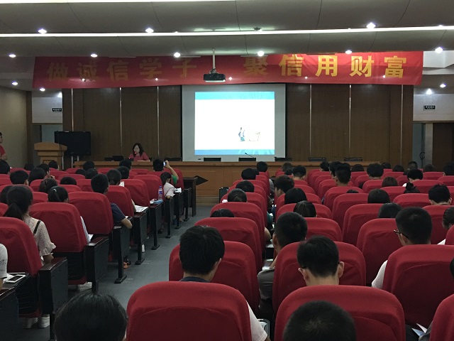 通过诚信宣传片学习,同学们了解信用在今天的生活中无处不在,影响了每个人的生活。中国人民银行安庆市中心支行征信科科长方芳作了的个人诚信知识讲座,内容包括征信基本概念解读,我国个人征信系统建设情况,个人征信报告的使用说明及应用,如何建立良好的个人信用以及征信的热点问题等方面。最终通过有奖问答的方式,让在座的各位学生进一步巩固和复习了征信相关知识,活动热烈,同学们积极参与,反响良好。