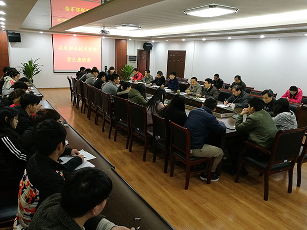座谈中,学生代表结合目前的学习生活表达自己的心声,从课堂教学管理、实训实验保障、食堂质量监控、宿舍设施改造、校园安全防控、学生医疗健康、后勤维修服务、学生管理与文体活动、图书更新阅览、就业创业服务等十个方面,积极建言献策。座谈会气氛热烈、融洽,相关部门负责人针对同学们提出的部分问题现场进行了答复。(文/桂 骏 图/王晓林)