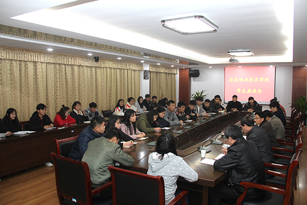 3月22日下午,我院在综合楼第二会议室召开学生座谈会。党委书记王进出席会议并讲话。副院长毕明生主持会议。教务处、财务处、总务处、保卫处、招生就业处、学生处(团委)、实验实训中心、图文信息中心负责人和30名学生代表参加会议。