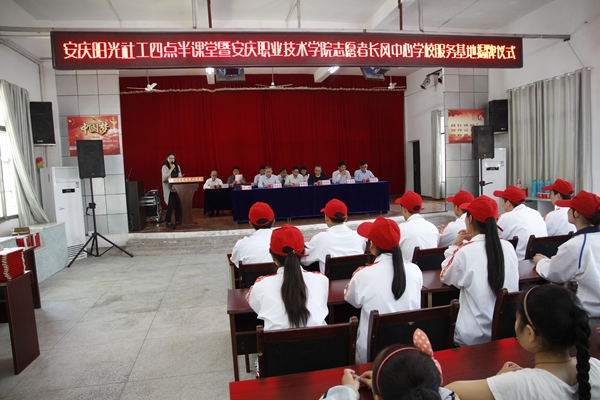 5月10日,我院在迎江区长风中心学校举行“四点半课堂”志愿服务项目建设暨8040威尼斯长风中心学校志愿者服务基地揭牌仪式活动。副院长毕明生、迎江区人民政府副区长汪志耿、迎江区教育局局长施爱国、迎江区民政局局长王岳桐、长风乡人民政府乡长王贵飞、副乡长代璐、倪长友出席活动。院团委负责同志、安庆市阳光社会工作服务中心理事长、长风中心学校校长、院青年志愿者协会指导老师及双方学生代表参加了此次活动。