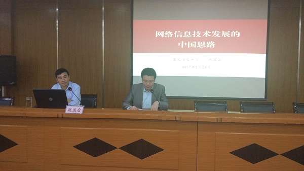 5月24日晚,科学人文艺术素质讲座第七讲《网络信息技术发展的中国思路》在图文信息楼三楼学术报告厅举行。本次讲座邀请图文中心副主任疏国会主讲,近200名学生代表聆听了讲座。