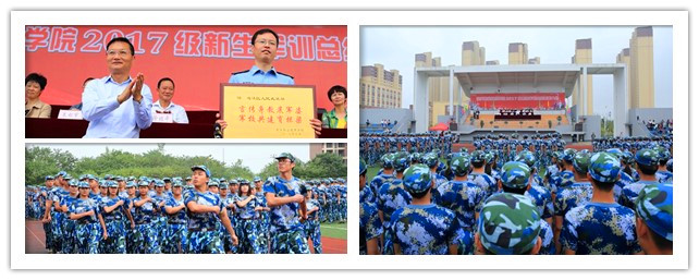 9月22日上午,我院2017级新生军训汇报表演暨总结表彰大会在学院运动场隆重举行。院党委书记王进出席并向承训部队赠送锦牌。副院长施运华、毕明生、谭维奇,军训团团长、迎江区人武部副部长郭要东出席。纪委书记方天祜主持大会。各系(部)及教务处、保卫处、学生处负责人,全体新生及辅导员参加大会。