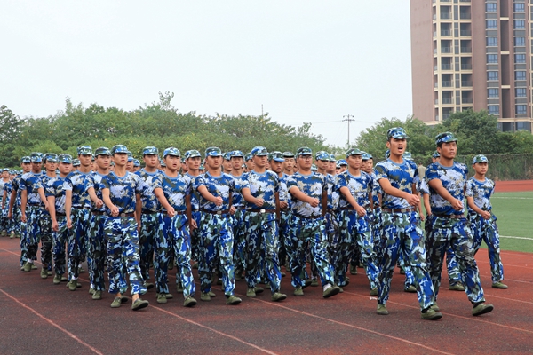 上午9点,大会在庄严的国歌声中拉开帷幕。26个新生连队排着整齐的队列,踏着稳健的步伐,喊着响亮的口号,踩着有力的节奏,精神抖擞,士气高昂,逐次通过主席台接受检阅,充分展示了新生积极向上、团结奋进的精神面貌,全面展现了为期12天刻苦训练的成果。整个汇报表演昂扬着青春的气息,绽放着铿锵的节奏,取得了圆满的成功。