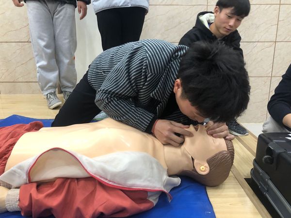 培训过程中,培训教师理论与实践相结合进行了详细地授课,培训重点讲解红十字知识、救护概念、现场心肺复苏及AED演示方法、气道异物梗阻的急救、创伤救护、避险逃生、常见急症等急救措施和应急正确操作方法。培训现场应用模拟人实操方法加深对救护员应急知识的理解与掌握,期间老师穿插动作示范,邀请学生参与互动,更有助于学生掌握应对突发事件的能力。整场活动在培训老师的正确指导下井然有序的完成,参训同学在培训结束后经过理论考试通过救护员培训考核。
