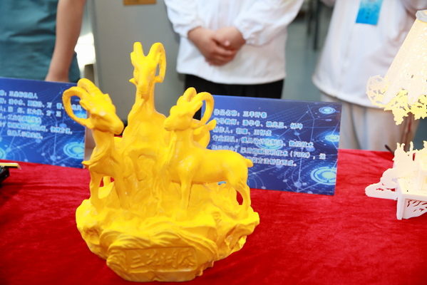 本次科技创新作品展分献礼百年红色主题展、科技创新创意作品展、“互联网+”创新创业作品展和环保创意作品展四大展区。献礼百年红色主题展主要利用3D打印技术制作模具成型,“三羊开泰”、“福星高照”等10件优秀作品集中亮相,生动诠释了思想性与艺术性的相统一,表达了师生对党和国家的挚爱深情。科技创新创意作品展分多轴动态加工作品展示和电器控制、数控加工科技作品展示两大板块,“三坐标机器人”、“基于无线WIFI控制的智能小车”、“四足机器人”、“炫彩小蛮腰”等富有创意作品吸引现场师生驻足欣赏。“互联网+”创新创业作品展是将我院“互联网+”创新创业作品通过展板和现场项目讲解的方式集中展示,现场项目负责人向现场师生做项目讲解,突出展现了我院在“互联网+”创新创业竞赛方面的优异成果。学生们利用废旧纸盒、易拉罐等创新制作的“无接触式感应垃圾桶”、“自制饮水机”、“雾化机”等也让现场师生眼前一亮。