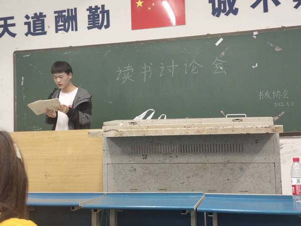 为营造浓厚的书香校园,丰富同学们的课外生活,激发大家阅读的兴趣和热情,促进书友之间的了解和交流,书友俱乐部协会于2022年5月11日晚6:30在三号教学楼504教室成功举办一场以“以书会友,携手共进”为主题的“读书讨论会”。本次讨论会由1名指导老师,10名参赛选手和20名观众裁判参加。选手和观众皆是从各个学院来的同学们。