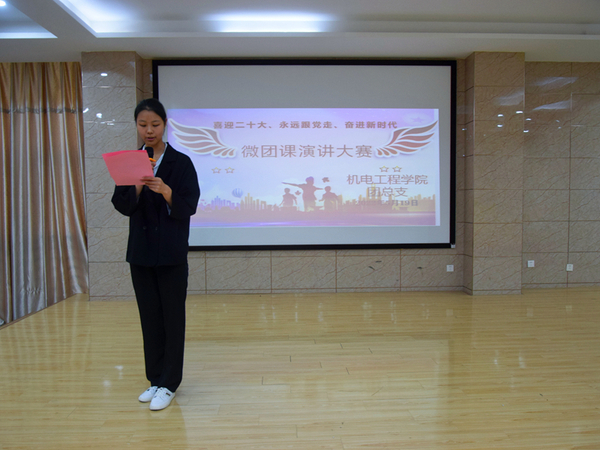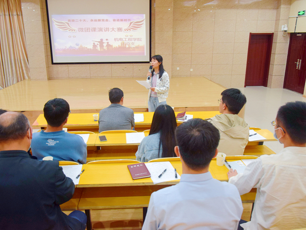 为庆祝中国共产主义青年团成立100周年,加强广大青年学生继承和弘扬以爱国主义为核心的伟大民族精神,坚定听党话、跟党走的信念,集中展示青年学生走在时代前列、奋力开拓奉献的青春风采,5月19日中午,机电工程学院团总支在216教室成功举办“喜迎二十大、永远跟党走、奋进新征程”主题微团课比赛。学院党总支副书记李承鹏出席比赛现场,学院团总支书记、副书记,专兼职辅导员代表及参赛人员参加。