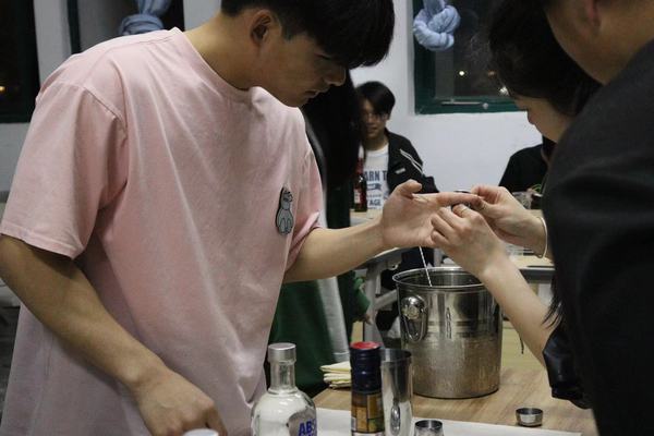 活动中由酒店爱好者协会副会长首先向参会的同学介绍了鸡尾酒的品种、调制的原理以及六大鸡尾酒基酒的知识,现场以“红粉佳人”为例进行鸡尾酒调制展示,并指导会员学习鸡尾酒调制、饮用及品鉴,同学们兴致非常高,纷纷请教酒水相关知识,现场气氛热烈。