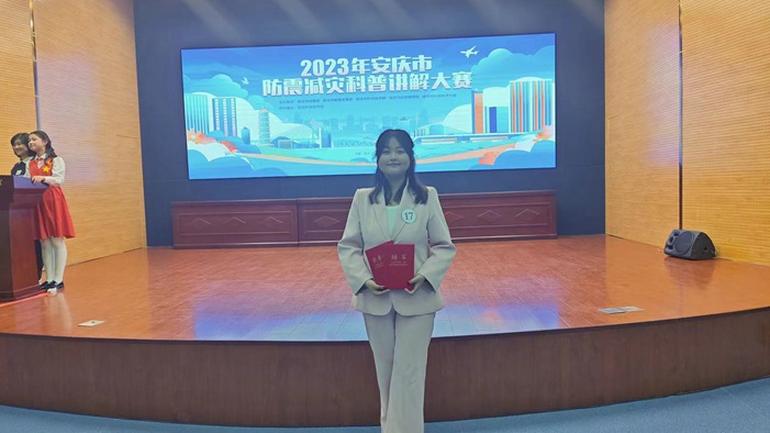 11月17日,2023年安庆市防震减灾科普讲解大赛在安庆市科技馆成功举行,本次大赛是安庆市科普工作的一次盛会,吸引了来自全市各地的科普工作者和爱好者参加,以“防震减灾、科普先行”为主题,通过讲解的形式,向公众普及防震减灾知识。经过激烈角逐,现代商务学院22级大数据与会计5班学生胡欣苑,凭借其深入浅出的讲解内容和生动活泼的表达方式,荣获本次大赛的三等奖。